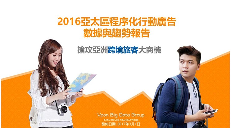 Vpon威朋大數據集團發布2016年亞太地區行動程序化廣告數據報告,報告中透過國家及城市熱圖(heat map)深度分析及比較大中華地區旅客於旅行地及居住地的手機行為,更以美國運通的跨境行銷案例展示利用數據分析增加海外交易營收達5倍的成功經驗。此外,本報告亦顯示了最新亞太地區行動程序化廣告市場的概況。