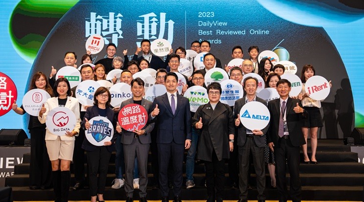 大數據股份有限公司旗下台灣第一數據內容平台《DailyView網路溫度計》17日在華南銀行總行大樓會議中心2樓舉辦「2023第六屆網路口碑之星」頒獎典禮。今年以「轉·動 永續新境界」為主題,聚焦ESG企業永續、健康休閒、美食及宅經濟等四大領域,進行優秀企業的獎項頒發。
