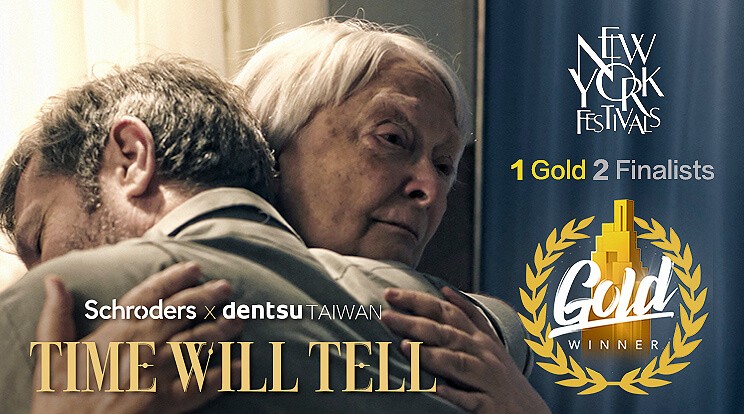 2020紐約廣告獎 (New York Advertising Festival),台灣電通作品「施羅德投資/時間會看見」,這隻完全由台灣團隊在台灣製作的感人影片,為台灣摘下金獎及二項佳作!